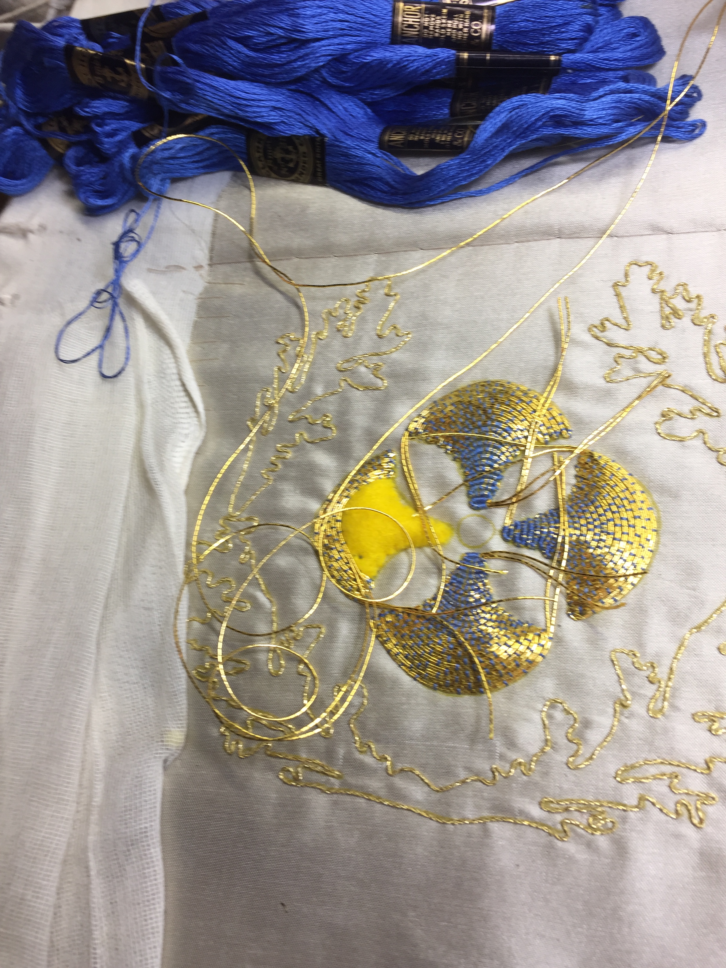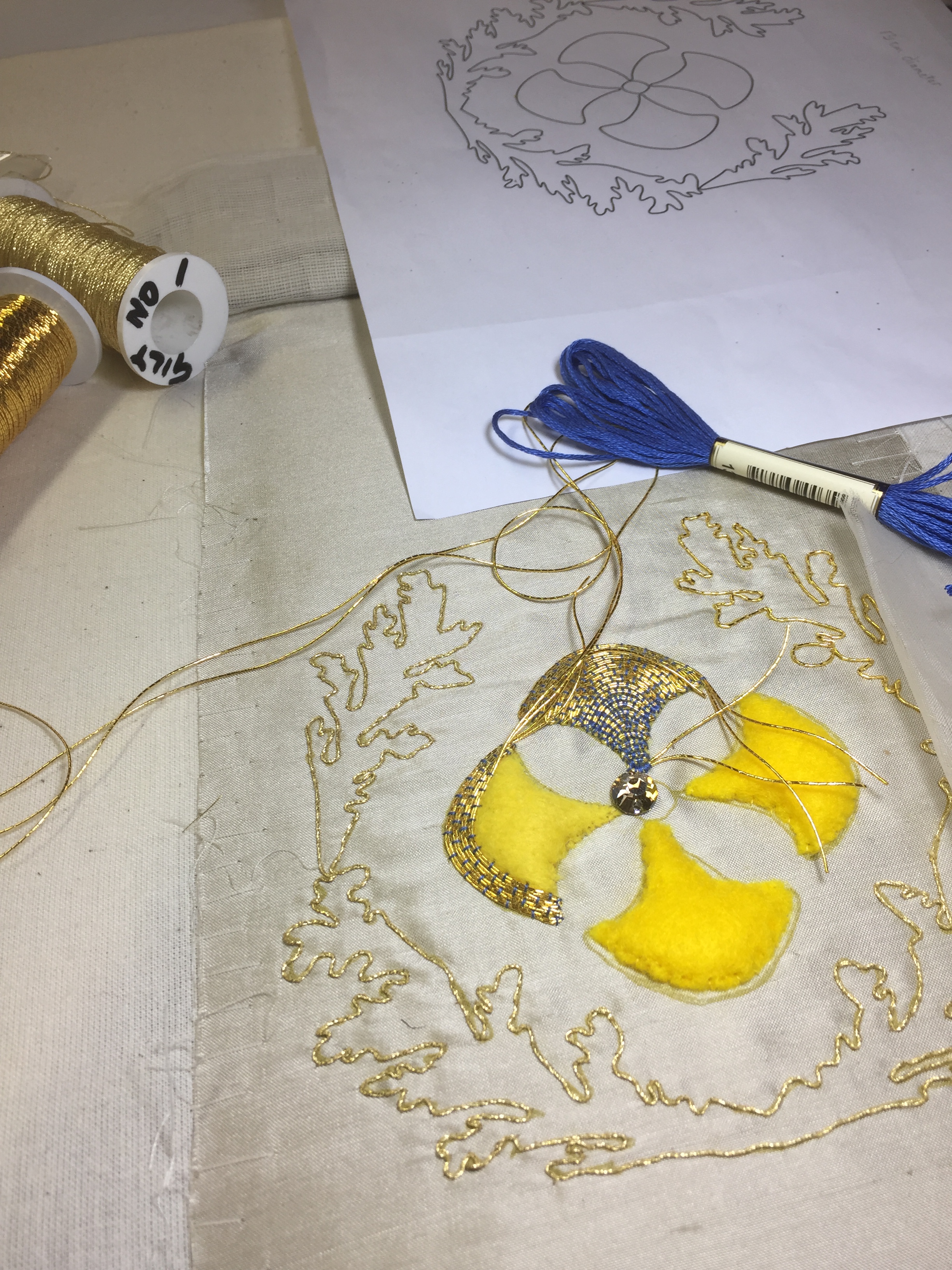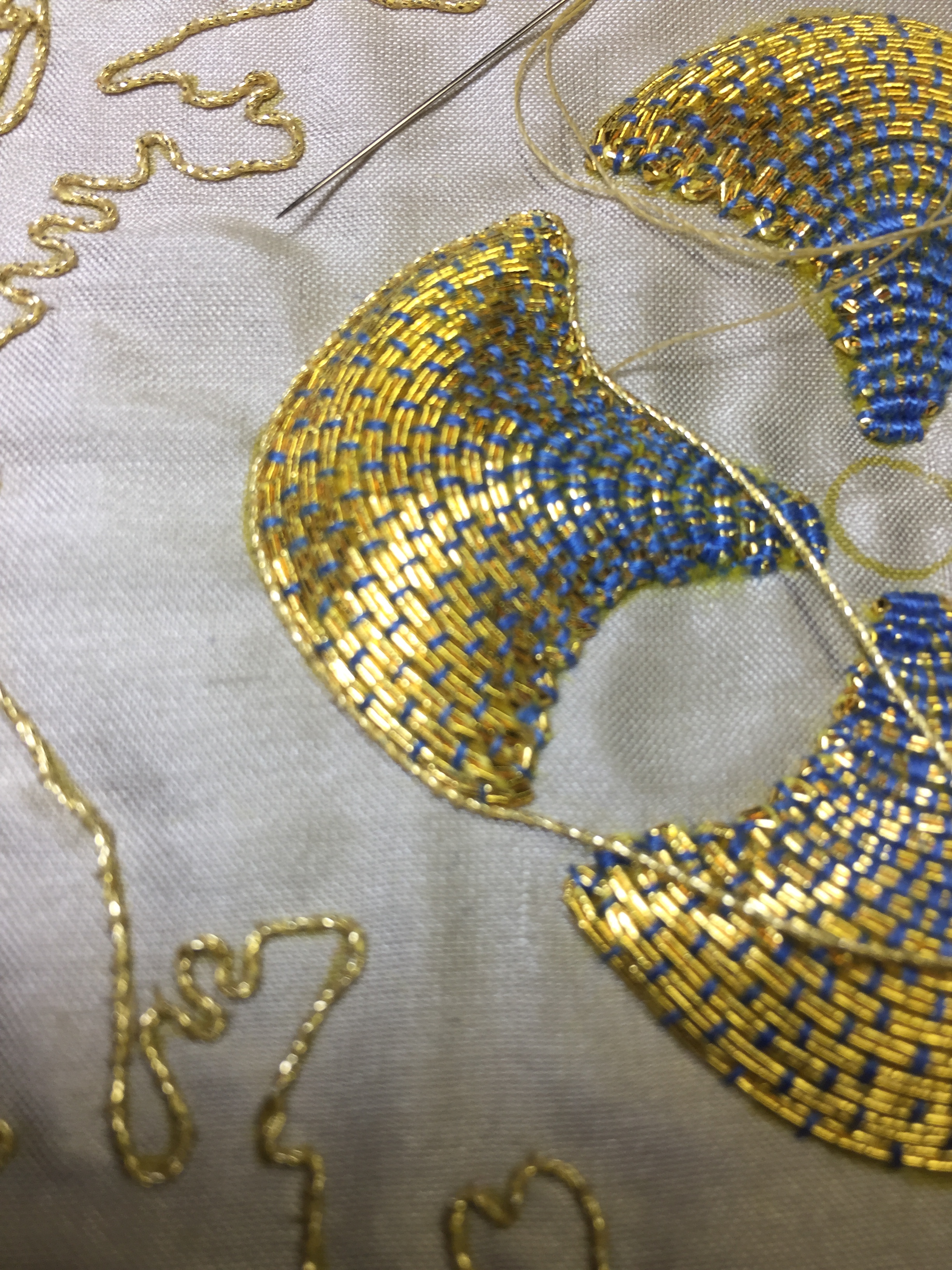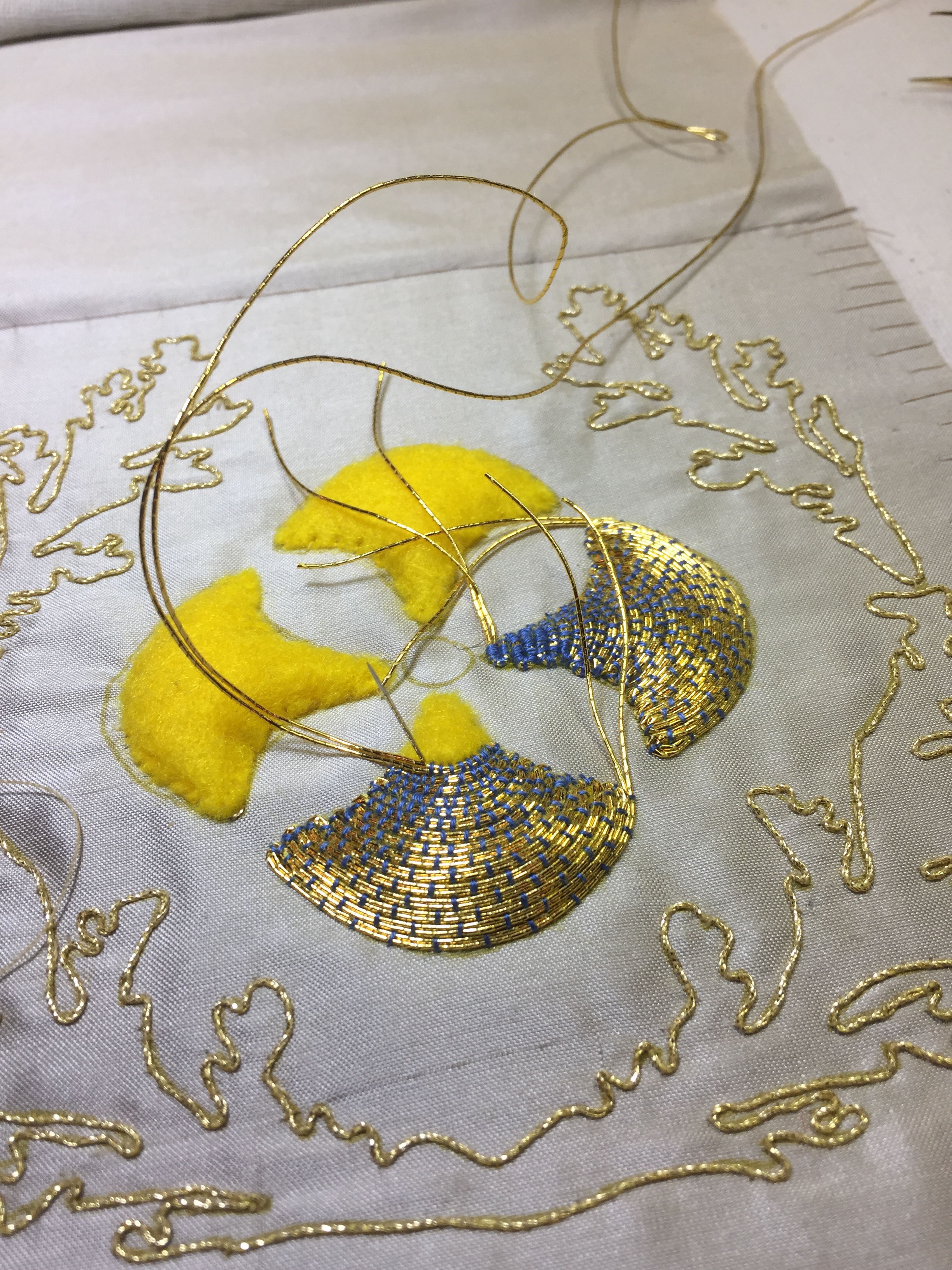This little piece of Goldwork embroidery will be made up as a stole.