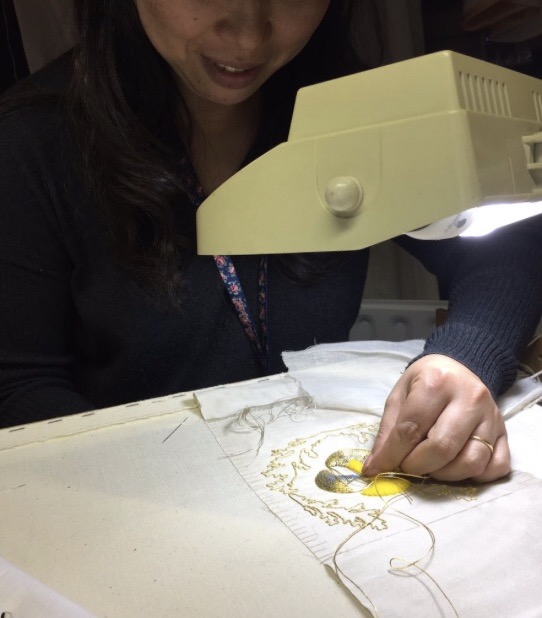 Although I work for the Royal School of Needlework Embroidery Studio, I go to St Paul’s Cathedral once a week for volunteer work. Just finished embroidering the cross the other day.